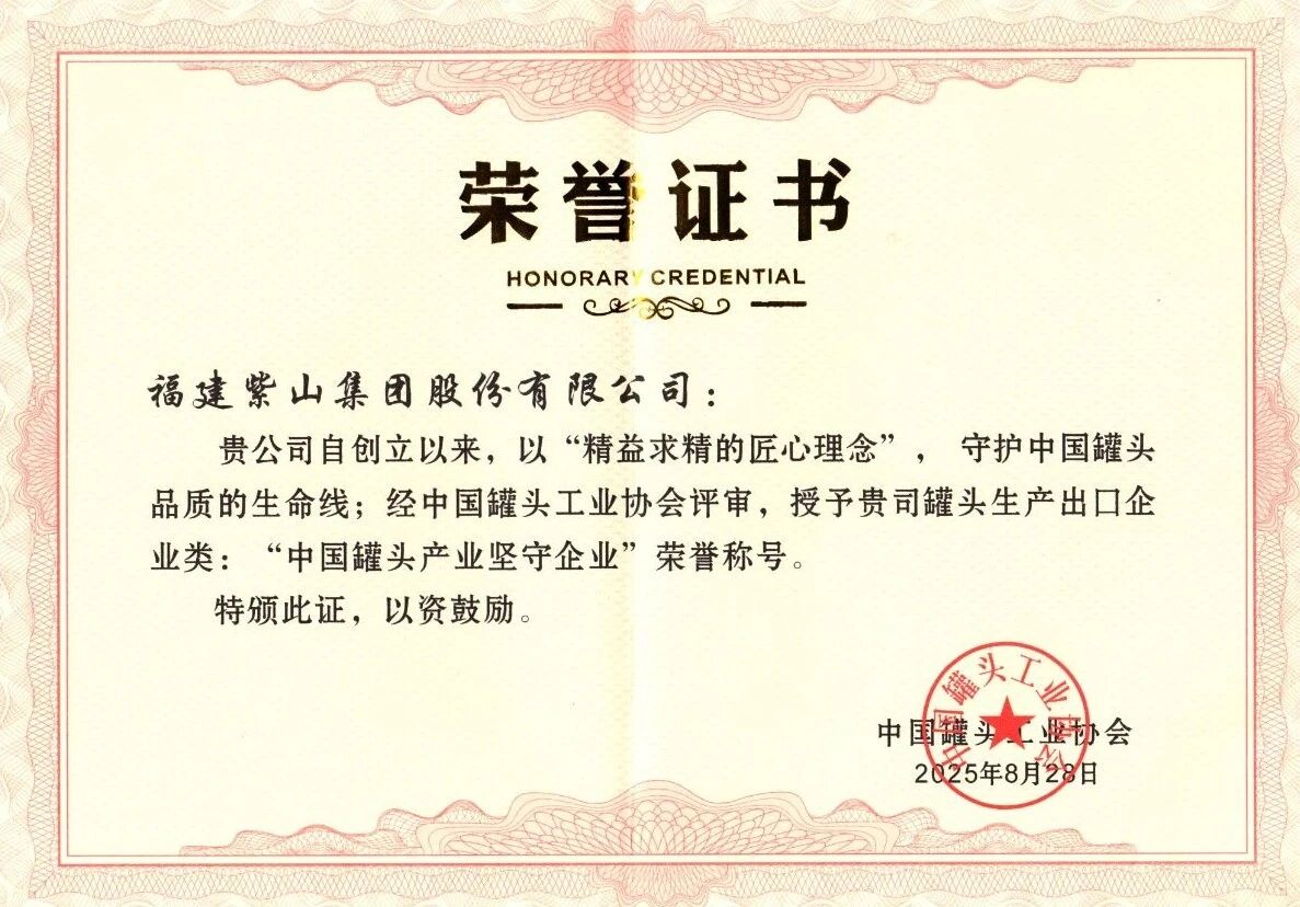 在莊重的“薪火相傳”環(huán)節(jié),紫山集團(tuán)連獲殊榮。集團(tuán)公司榮獲“中國罐頭產(chǎn)業(yè)堅守企業(yè)”榮譽(yù)稱號,這不僅是對集團(tuán)四十余載深耕罐頭產(chǎn)業(yè)的肯定,更是對全體紫山人堅守品質(zhì)、傳承匠心的褒獎。