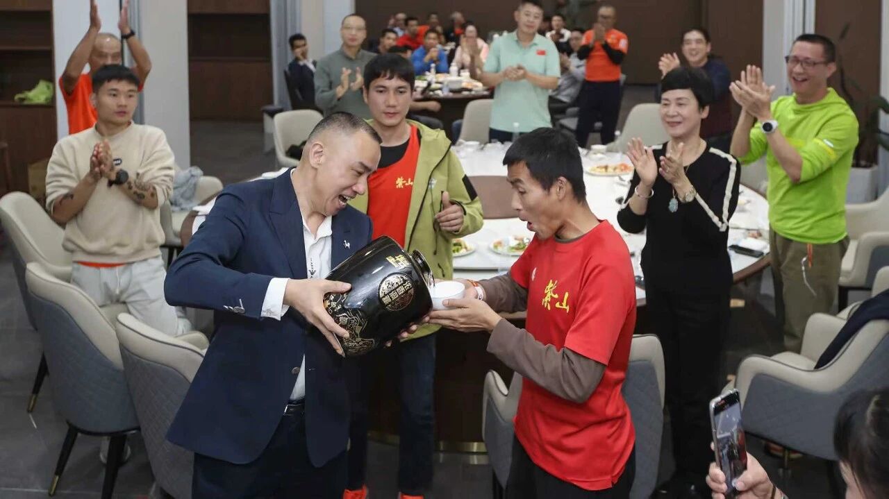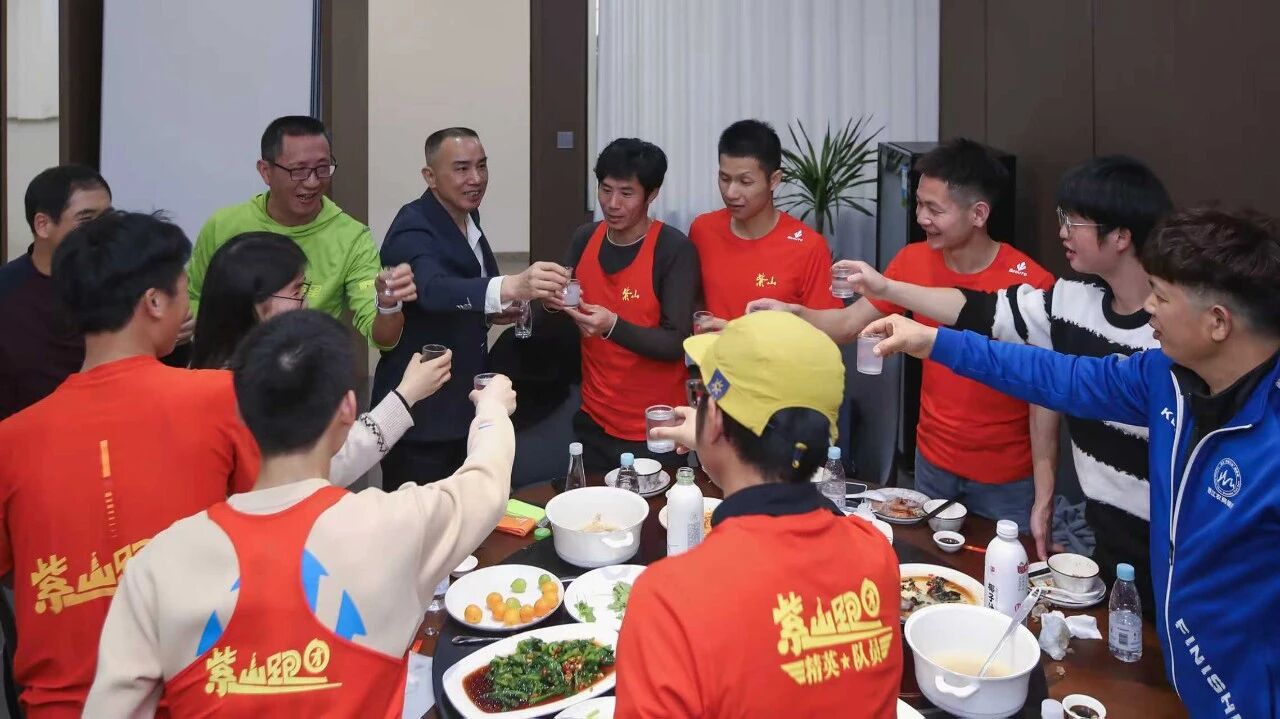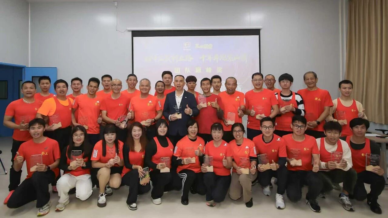 紫山集團(tuán)總裁、跑團(tuán)團(tuán)長洪水河致辭。他表示,跑步與創(chuàng)業(yè)本質(zhì)相通,皆為自我磨礪的修行,需要"不找借口、全力以赴"的拼勁。他感謝全體跑友十年來的信任與陪伴,致敬每一位伙伴在各自崗位上的專業(yè)堅(jiān)守與在跑道上的奮力拼搏。他公布了一組亮眼數(shù)據(jù):十年來,紫山跑團(tuán)成員共斬獲冠軍186次、亞軍144次、季軍72次。"你們用腳步丈量征程,用汗水澆灌榮耀,為紫山贏得了一塊沉甸甸、有溫度的'金牌'。你們,就是紫山最有活力、最耀眼的名片!"